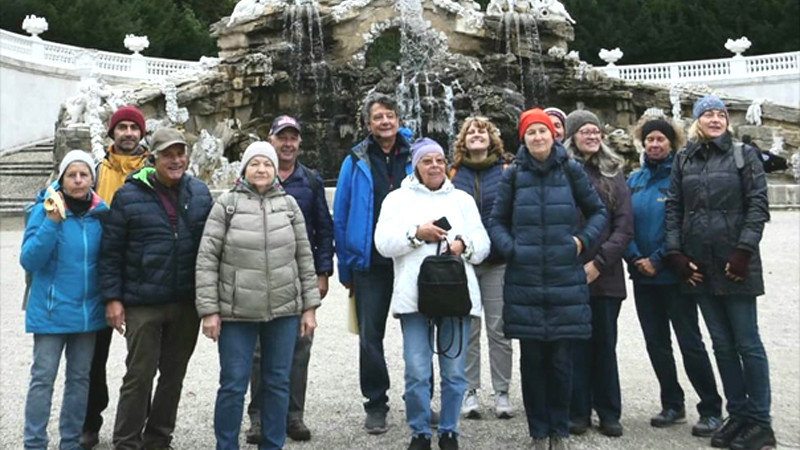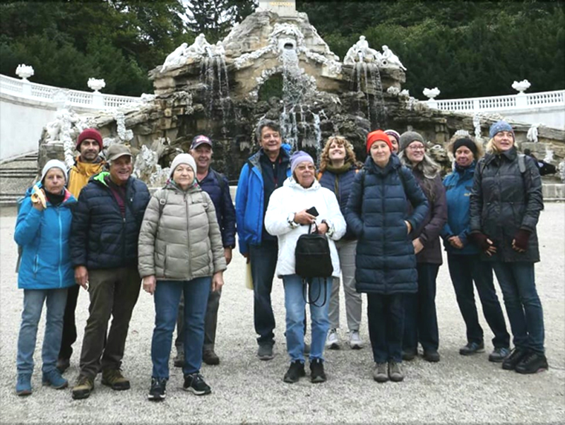 Im Schlosspark Schönbrunn bestaunten wir den Obelisken, die Römische Ruine und den gigantischen Neptunbrunnen. Vorbei am Schloss und am ältesten Ginko-Baum Österreichs (1781) ging es in die Hietzinger Haupstraße, wo wir durch die Glasfenster des SPAR-Marktes Marmorsäulen vom Engelsberg schemenhaft sehen konnten.