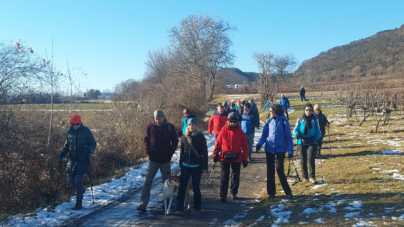 "Wenn Engerl wandern" - unter diesem Motto schien die heurige Neujahrswanderung der Naturfreunde Winzendorf zu stehen. "Tune in" würden Musiker sagen - frei übersetzt "sehr stimmig". Ja, bei traumhaftem Sonnenschein, der nach vielen trüben Nebelwochen ein Labsal für unser Wohlbefinden war, marschierten wir vom Bahnhof Winzendorf über die Winzerstraße ins Brunner Tal und nach kurzem Aufstieg durch die Weingärten und den Wald zum Gasthof Eisensteinhöhle. Der genossen wir ein üppiges traditionelles österreichisches Mittagessen. Was für ein Jahresauftakt!